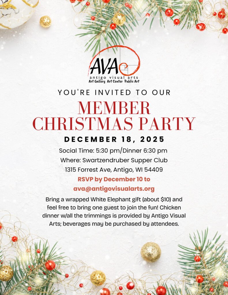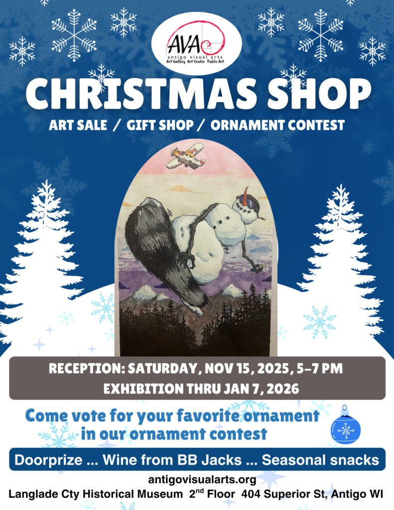 Celebrate the season with us at our annual AVA Christmas Gift Shop, running throughout the holidays at the AVA Gallery in the Langlade County Historical Museum. With no entry fees, this festive event invites local artists to showcase their holiday-themed art for the community. Bring your pre-priced items and inventory list on November 12, 2026. Join the fun, support local art, and find unique gifts for everyone on your list.