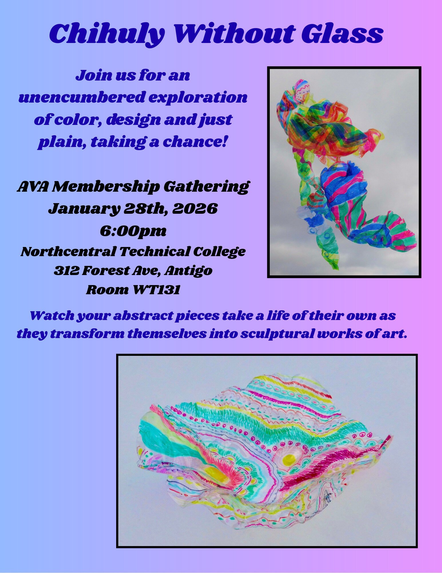 Join Kim for an unencumbered exploration of color, design, and just plain, taking a chance! Watch your abstract pieces take a life of their own as they transform themselves into sculptural works of art.