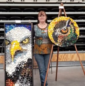 Vicki Eldridge is a renowned artist whose work not only captivates the eye but also speaks to the heart of sustainability. With a deep commitment to recycling, Vicki has become known for her innovative use of recycled materials in her art projects. One of Vicki’s notable contributions to public art is the Bradley Funeral Home Resting Flag, a striking installation that honors and commemorates the lives of veterans. Her creativity also shines through in the Antigo Fire Department Badge Sculptures,…